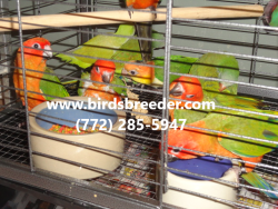 Baby red factor Sun Conures available at $750 each. Multi-purchase discount available