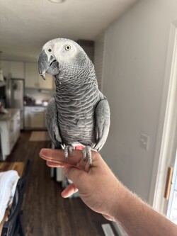 This phenomenal boy was hatched in 95 and is close banded with his hatch year. He is one of the most exceptionally talented african greys I've had the pleasure of owning. He sings, talks, whistles with vibrato. He is pretty incredible. However, he prefers a woman caretaker~ and I am a male. He has always been on a great diet of zupreem pellets and fresh foods. He is a very large congo grey. He is fully flighted and knows how to fly.