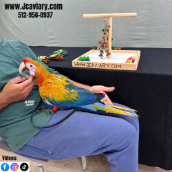 Accepting reservation on this beautiful Yellow dominant Camelot macaw baby. She is being hand-fed and will be fully trained. She will be on a healthy diet of pellets and vegetables. All our babies are sweet and very socialized. Please see our website for detailed info! For all inquiries please call-- 512-956-0937