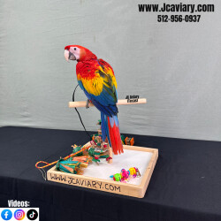 Incredibly sweet, tame, hand-fed and fully trained Scarlet macaw baby. This baby is on a healthy diet of organic pellets, veg and mixed nuts. All our babies are sweet and very socialized. Please see our website 4 detailed info! For inquiries please call-- 512-956-0937