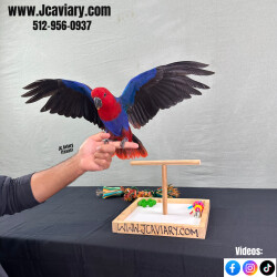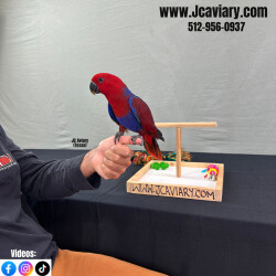 Incredibly sweet, tame, hand-fed and fully trained Female Eclectus baby. She is weaned on a healthy diet of organic pellets, veg and mixed nuts. All our babies are sweet and very socialized. Please see our website 4 detailed info! For inquiries please call-- 512-956-0937