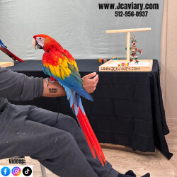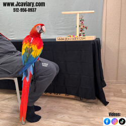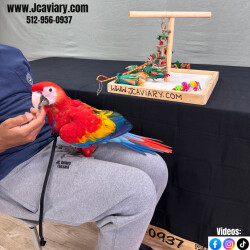 Incredibly sweet, tame, hand-fed and fully trained Scarlet macaw baby. This baby is on a healthy diet of organic pellets, veg and mixed nuts. All our babies are sweet and very socialized. Please see our website 4 detailed info! For inquiries please call-- 512-956-0937