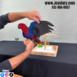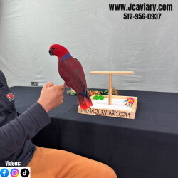 Incredibly sweet, tame, hand-fed and fully trained Female Eclectus baby. She is weaned on a healthy diet of organic pellets, veg and mixed nuts. All our babies are sweet and very socialized. Please see our website 4 detailed info! For inquiries please call-- 512-956-0937