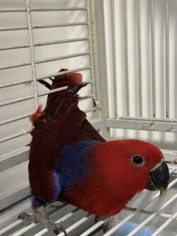 Solomon Island Eclectus female. She is 6 months old. She was parent raised, and has not been handled by humans. She would be ideal to pair with a male.