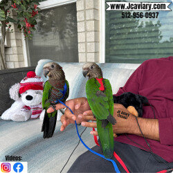Very rare hawk headed parrot babies ready now for their forever homes. They are fully trained and weaned on a healthy diet of organic pellets and vegetables. All our babies are sweet and very socialized. Please see our website for details! For all inquiries please call-- 512-956-0937