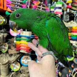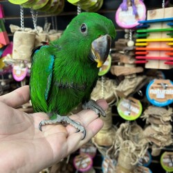 Currently hand feeding is a sweet baby Solomon Island Eclectus male. For more info call 773-317-3785.