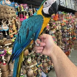 Hand fed very sweet and tame dna tested female Blue & Gold Macaw weaned and ready for its new home. For more info call 773-317-3785.