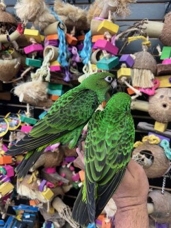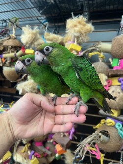 Just weaned are sweet baby Jardines Parrots. This species of Parrot makes a great pet companion as they are outgoing and comical birds, who can learn to talk and mimic sounds and are affectionate. For more info call 773-317-3785