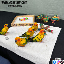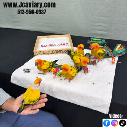 Accepting reservations on these beautiful HIGH-YELLOW sun conure babies. They are now being hand-fed and trained.They will be weaned on a healthy diet of organic pellets and vegetables. All our babies are Extremely sweet and very well socialized. Please see our website for detailed info! For all inquiries please call-- 512-956-0937