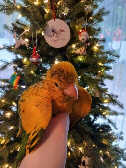 This little cutie is a DNA'd male that hatched on 9/23/25. He's tested negative for Polyomavirus and PBFD. He is currently being hand fed and will be ready for his new home in the end of Janaury.