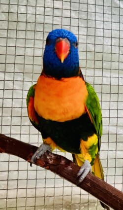 Sweet and tame. Weaned to Higgins Intune Nectar and low iron fruit and vegetables. Shipping is available thru Delta Csrgo. For more pictures visit FBook page exoticlories.