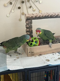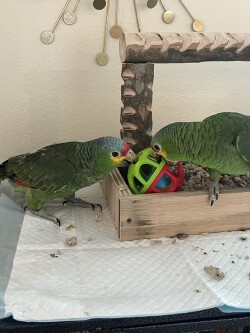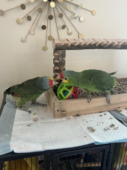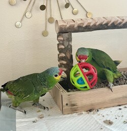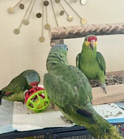 We have 2 Red Loreds Available. Sex unknown. They are only about 5-6 Months years old completely tamed. They are a medium size Amazon with the abilities to talk and mimic noise as well, although they are smaller in stature they do have big personalities and enjoy walking all over the house. Fun little bird, but cnstant engagement is important to build good habits and have the perfect companion. Definitely fun for a young family with teenagers or a love one who lives alone.