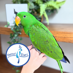 Follow our Parrot Stars Podcast to learn all about our parrots, our purchase process, and our philosophy of parrot care."