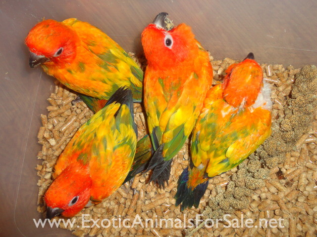 Baby red factor Sun Conures available at $550 ea. Multi-purchase discount available