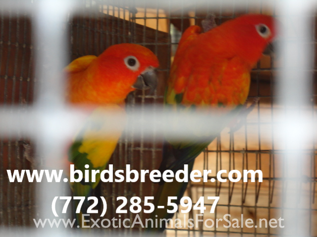 Young pairs of red factor Sun Conures available at $1,500 per pair