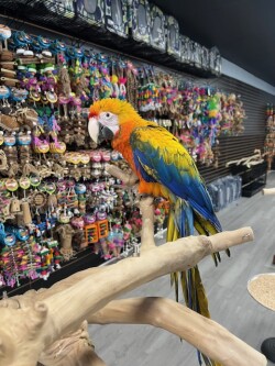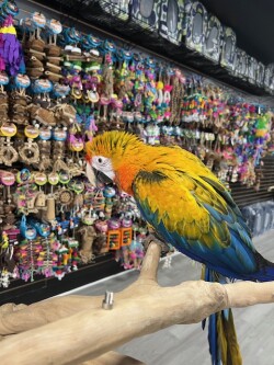 Hand fed very sweet and tame dna tested male available and ready for its new home. This beautiful Camelot Macaw Hybrid Yellow Dom is very tame and friendly and has some serious beautiful color feathering. For more info call 773-317-3785. We are located at 710 Lee St. Des Plaines Il 60016.