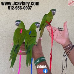 Incredibly sweet, tame, hand-fed and trained Hahns mini macaw babies ready now for their forever homes. These babies are weaned on a healthy diet of organic pellets, veg and mixed nuts. All our babies are sweet and very socialized. Please see our website 4 detailed info! For inquiries please call-- 512-956-0937