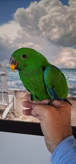 Handfeeding sweet male eclectus baby. Baby will be weaned onto Zupreem natural pellets and mixed veggies. $1250 deposit will hold until weaned...Shipping available.