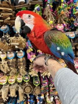 Hand fed very sweet and tame dna tested female Camelot Macaw Hybrid Red Dom available. For more info call 773-317-3785. We are located at 710 Lee St. Des Plaines Il 60016.