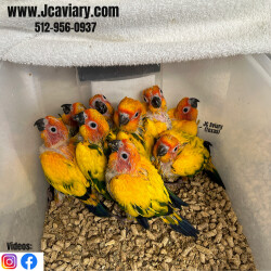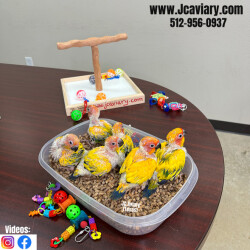 Accepting reservations on these beautiful HIGH-YELLOW sun conure babies. They are currently being hand-fed and trained.They will be weaned on a healthy diet of organic pellets and vegetables. All our babies are Extremely sweet and very well socialized. Please see our website for detailed info! For all inquiries please call-- 512-956-0937
