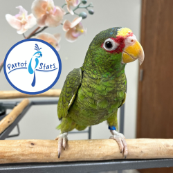 At Parrot Stars, we prioritize education, welfare, and responsible parrot ownership to help ensure every bird finds and thrives in a forever home. Before taking home any parrot, we provide comprehensive guidance on proper caging and setup, positive reinforcement training, household safety, nutrition, and enrichment. Parrots in captivity are still wild animals with all their natural instincts. Your overall success and experience with any species of companion parrot is greatly impacted by positive reinforcement training. A parrot’s behavior reflects both the environment they live in and the training they receive.