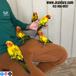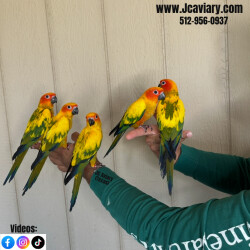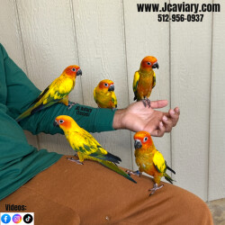Accepting reservations on these beautiful HIGH-YELLOW sun conure babies. They are still being hand-fed and trained.They will be weaned on a healthy diet of organic pellets and vegetables. All our babies are Extremely sweet and very well socialized. Please see our website for detailed info! For all inquiries please call-- 512-956-0937