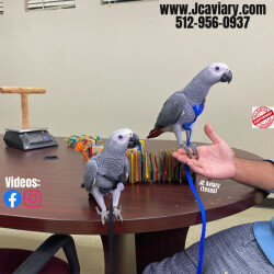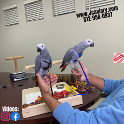 Incredibly sweet, tame, hand-fed and trained Congo African grey babies ready now for their forever homes. These babies are weaned on a healthy diet of organic pellets, veg and mixed nuts. All our babies are sweet and very socialized. Please see our website 4 detailed info! For inquiries please call-- 512-956-0937