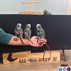 Incredibly sweet, tame, hand-fed and trained white capped pionus babies ready now for their forever homes. These babies are weaned on a healthy diet of organic pellets, veg and mixed nuts. All our babies are sweet and very socialized. Please see our website 4 detailed info! For inquiries please call-- 512-956-0937