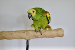 DNA sexed male Blue Front Amazon parrot. He has been disease tested negative against PBFD, Pachecos, polyoma, abv, and chlamydia. He talks but has been extremely hormonal since being around a female amazon.