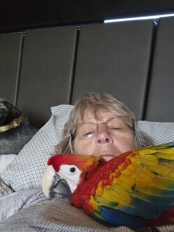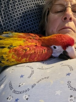 Dna'd 1 year old male Scarlett macaw! Mommas boy but husband can handle! Has been camping! Due to personal issues he needs to find his forever home! Comes with cage tons of toys have tree stand and other stands! No low balls!