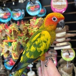 Hand fed Sun Conure. For more info call 773-317-3785. We are located at 710 Lee St., Des Plaines, IL 60016.