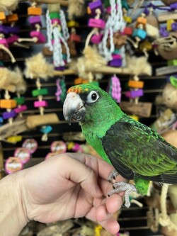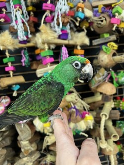 Weaned and ready for its new home is a Jardines Parrots. This species of Parrot makes a great pet companion as they are outgoing and comical birds, who can learn to talk and mimic sounds and are affectionate. For more info call 773-317-3785. We are located at 710 Lee St. Des Plaines Il 60016.