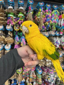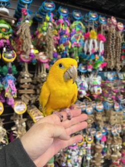 Very tame and sweet Golden Conure, loves to be out and socialized and loves to cuddle. Call us for more info 773 317 3785.