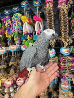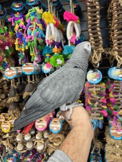 Beautiful Adult African Grey Congo available. Say hi to "SAM" he's a big beautiful calm African Grey that does lots of mimicking and has a large vocabulary. Call us for more info 773 317 3785.