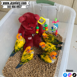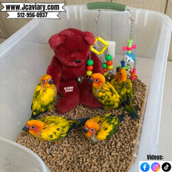 Accepting reservations on these adorable Sun Conure babies. They are currently being hand-fed and fully trained by us as well. They will be on a healthy diet of organic pellets and vegetables. All our babies are sweet and very socialized. Please see our website for detailed info! For all inquiries please call-- 512-956-0937