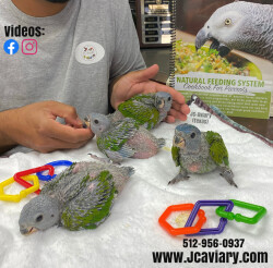 Accepting reservations on these adorable Blue-headed pionus babies. They are currently being hand-fed and fully trained by us as well. They will be on a healthy diet of organic pellets and vegetables. All our babies are sweet and very socialized. Please see our website for detailed info! For all inquiries please call-- 512-956-0937
