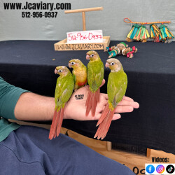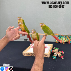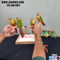 Accepting reservations on these adorable Pineapple Green cheek Conure babies. They are currently being hand-fed and fully trained by us as well. They will be on a healthy diet of organic pellets and vegetables. All our babies are sweet and very socialized. Please see our website for detailed info! For all inquiries please call-- 512-956-0937