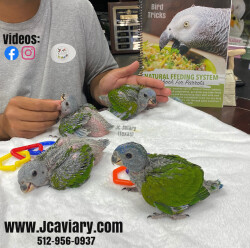 Accepting reservations on these adorable Blue-headed pionus babies. They are currently being hand-fed and fully trained by us as well. They will be on a healthy diet of organic pellets and vegetables. All our babies are sweet and very socialized. Please see our website for detailed info! For all inquiries please call-- 512-956-0937