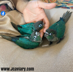 Accepting reservations on these adorable turquoise Green cheek Conure babies. They are all still being hand-fed and fully trained by us as well. They will be on a healthy diet of organic pellets and vegetables. All our babies are sweet and very socialized. Please see our website for detailed info! For all inquiries please call-- 512-956-0937