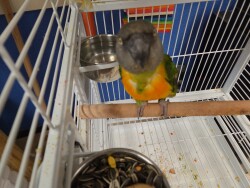 Very tame. 6 month old pied male Senegal. Great demeanor and good with teens and children. Whistles and says "pretty bird" amazing pet