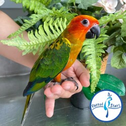 The Sun Conure, also known as the Sun Parakeet, is a small sized parrot species within the family Psittacidae. It is characterized by vibrant yellow plumage with orange and red coloration on the head and body, along with green and blue on the wings and tail. In the wild, Sun Conures inhabit tropical and subtropical forests, savannas, and palm groves across northern South America. They nest in tree cavities and are typically found in small flocks.