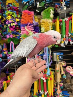 Beautiful Rose Breasted Cockatoo available dna tested female adult. Shes very sweet and loves to cuddle. Call us for more info 773 317 3785.