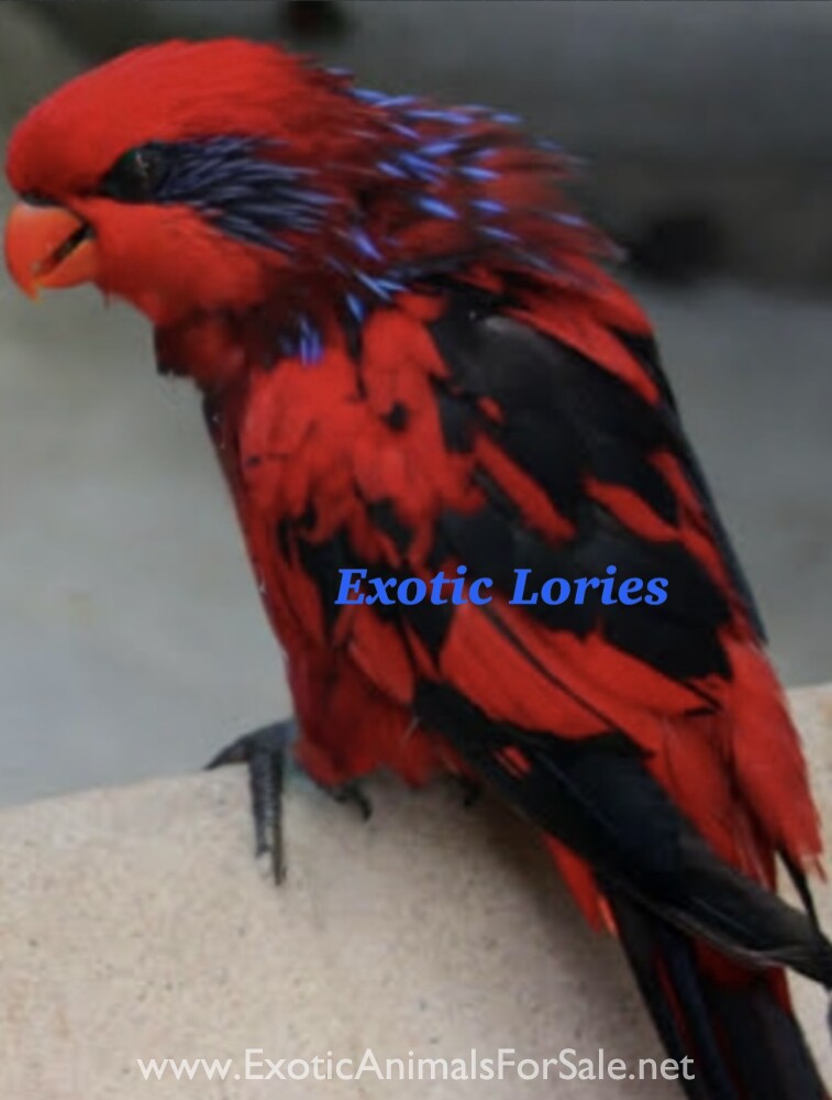 Proven pair of active black cap Lories. 4 years old. Diet:Higgins Lory Nectar and low iron fruit. Shipping is available thru delta cargo. For more pictures visit FBook page exotic lories.
