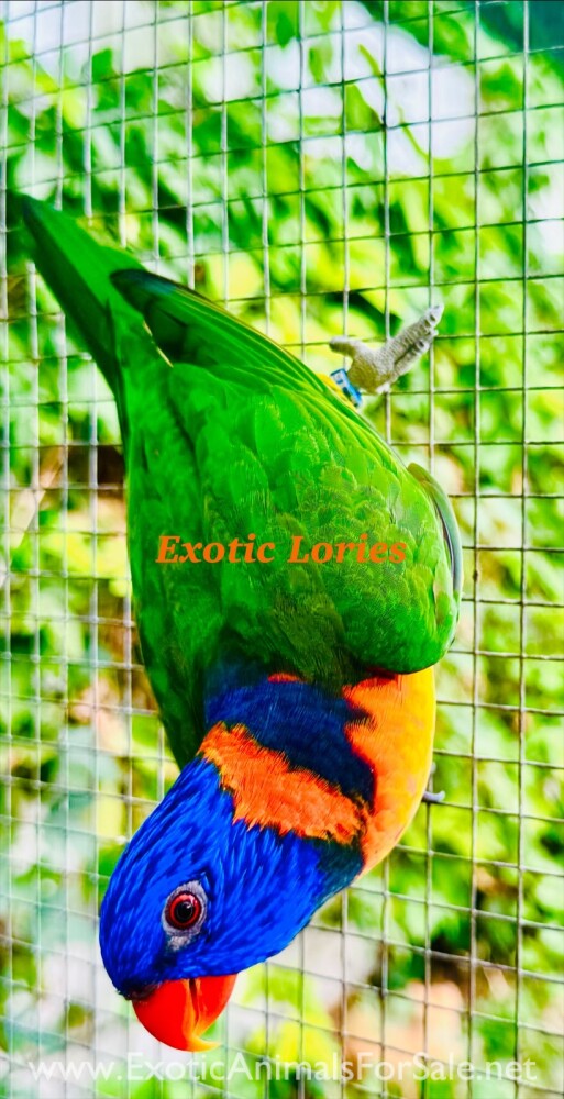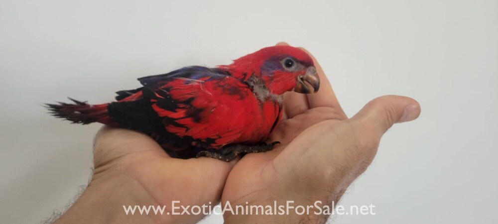 Hand fed and will be weaned to Higgins Intune nectar and low iron fruits and vegetables. For more pictures visit FB page exotic lories Shipping is available thru Delta Cargo. For more pics visit FB page exotic lories.