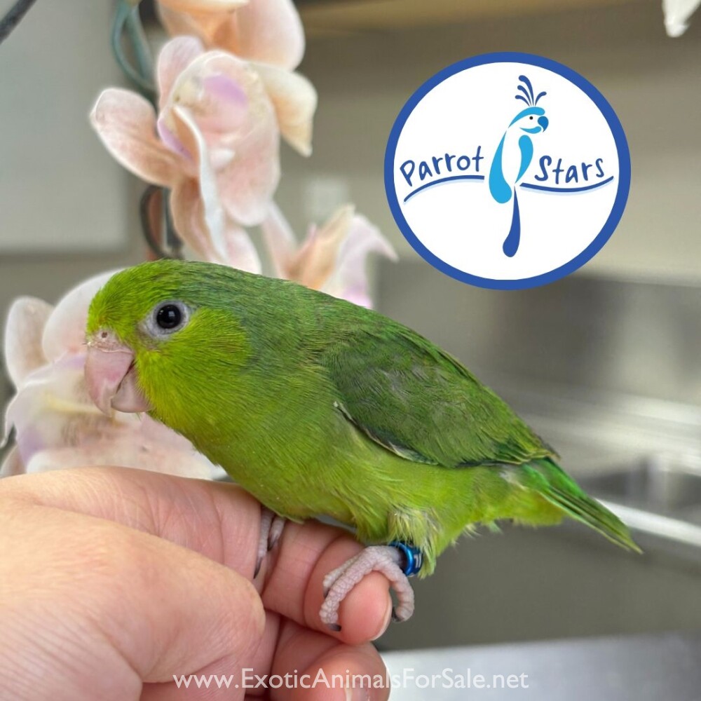 Scientific Name: Forpus coelestis (Pacific Parrotlet) Native Range: Western Coast, South America The Pacific Parrotlet is an extremely small parrot species within the family Psittacidae and is one of several species commonly referred to as parrotle...