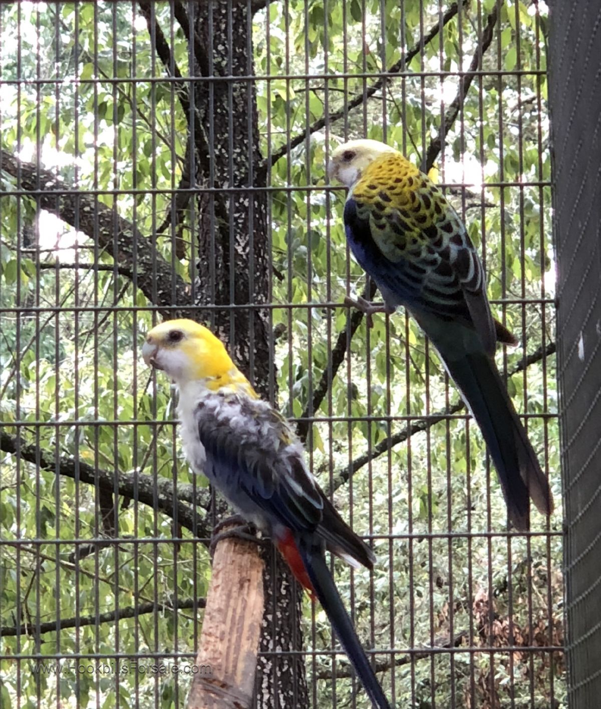 Pair of Pale-headed Rosellas, male plucked. Young birds. Always housed outdoors in large flight Aviary. $500