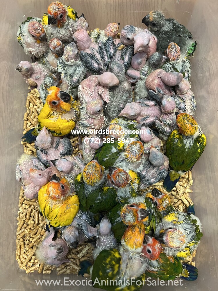 3 hand feed SunConures 2 Linnie’s parakeet (2) female and male Hahn Macaws 1 left on 2 feedings 5 Dominant red Sunconures 3 pending Fee applies for more information feel free to email or text @803-543-122o. No shipping will meet . Serious inqu...