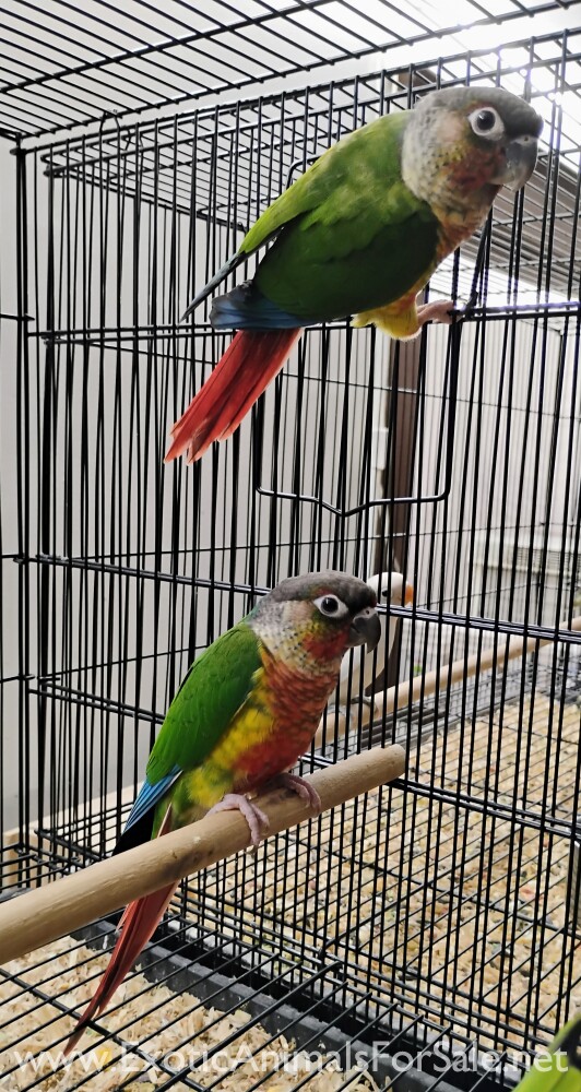 Young pairs of Crimson Bellied Conures available at $1,500 per pair