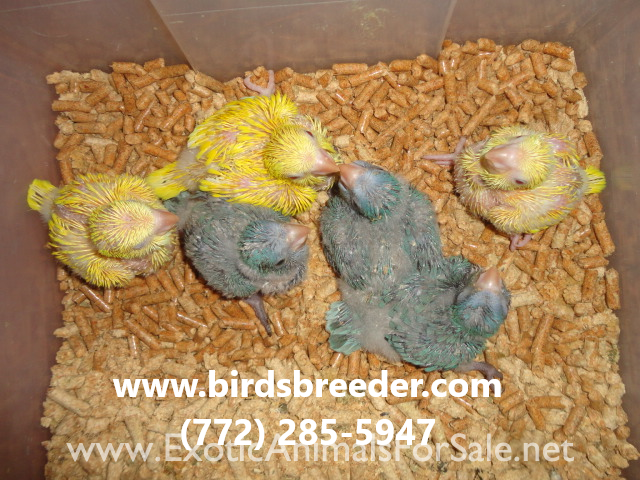 Green babies $100 each, pallid green $150 each, blue babies $200 each, pallid blue $250 each, lutino babies $400 each, albino babies $450 each