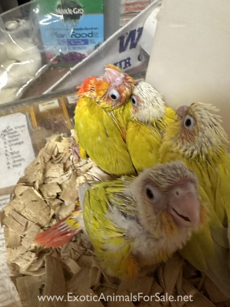 4 handed baby Suncheeks, with one high red. Priced to sell- $325- are on 3 handfeeding/ day. Shipping available air only, DNA is pending. Email is best contact